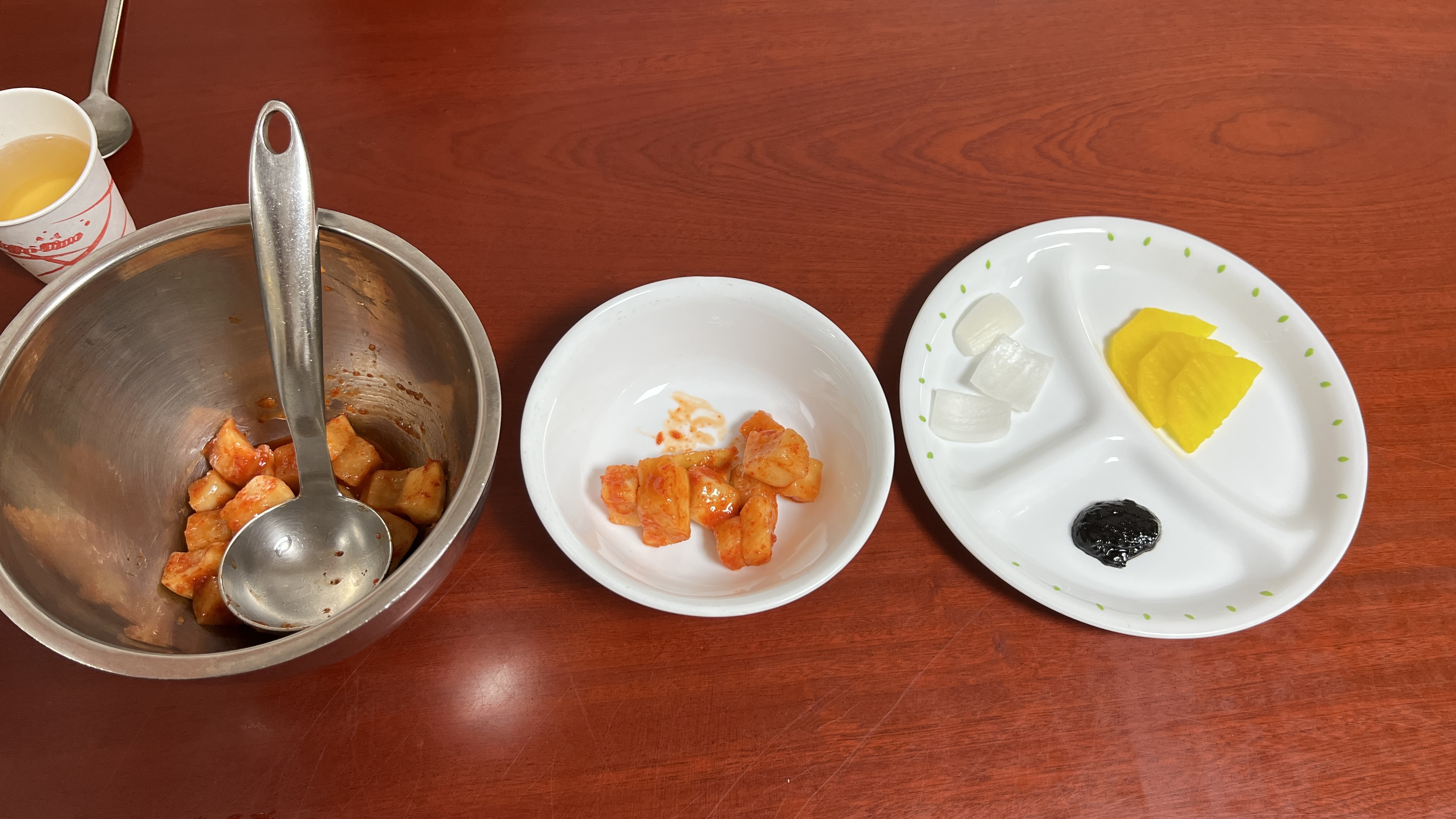 주문 후 기다리면서 기본으로 깔려있는 밑반찬을 봤는데